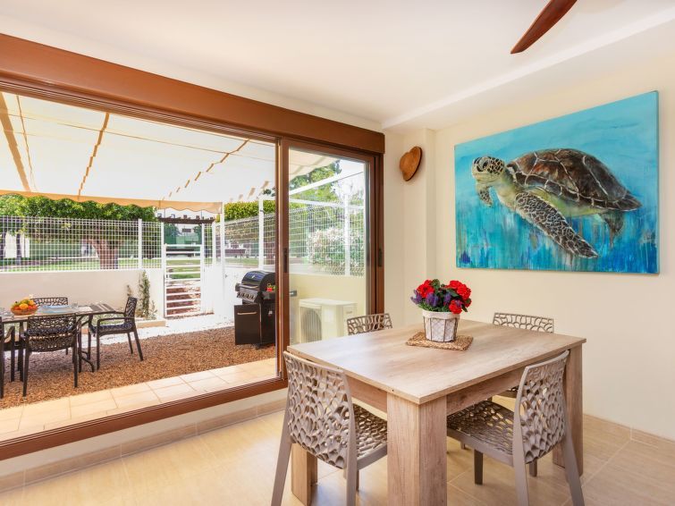 "Pons", 3-room apartment 81 m2, on the ground floor. Object suitable for 2 adults + 2 children. Practical and comfortable furnishings: living/dining room with dining nook, bar, satellite TV and digital TV (flat screen), air conditioning and forced-air heating. Exit to the terrace.