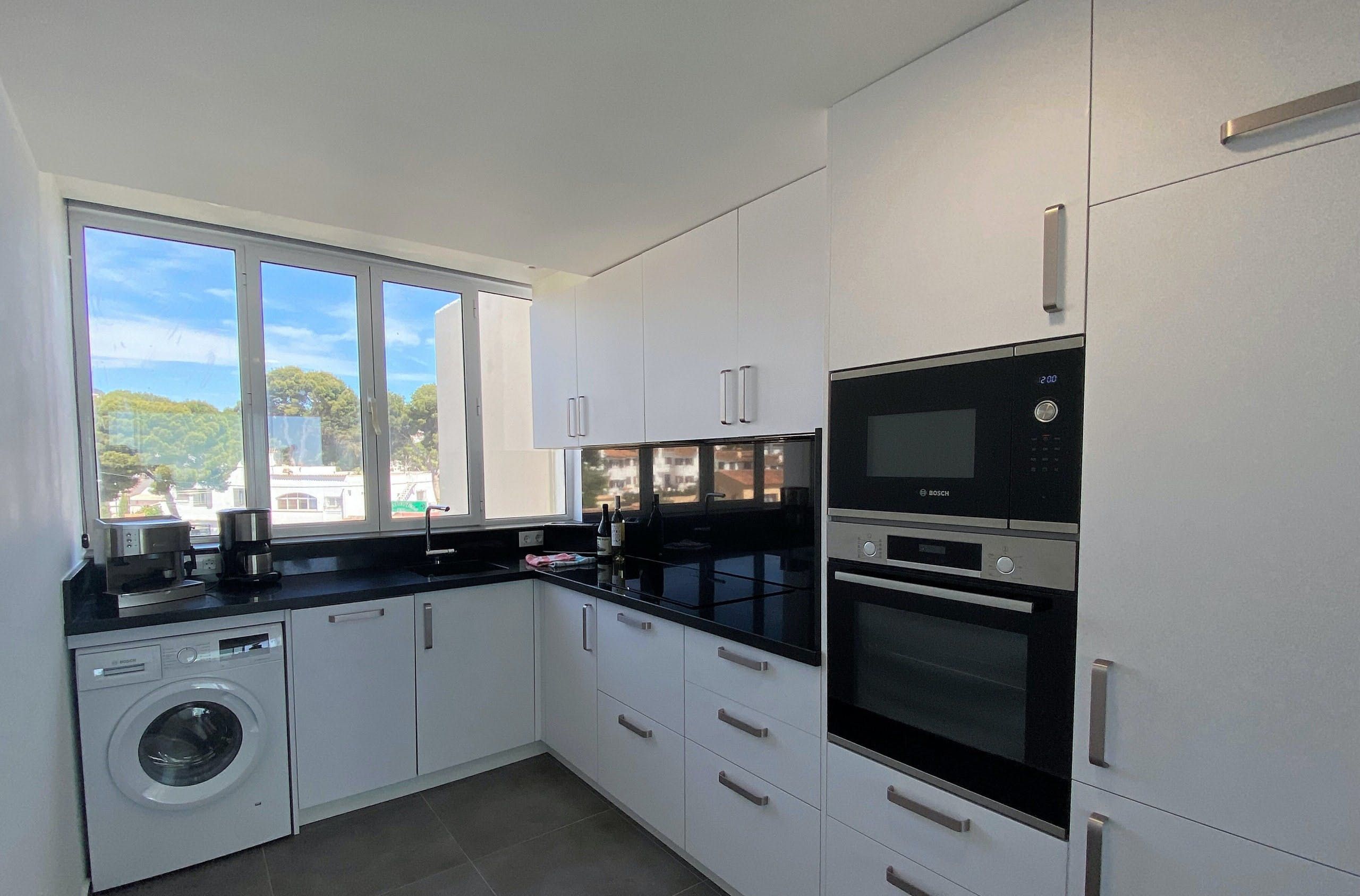 But the hidden gem of this home is the view from your kitchen. Preparing snacks and meals is much less of a chore when you’ve got the verdant landscapes in view. But if cooking isn’t on the agenda while on holiday, you’re in the heart of Moraira with plenty of restaurants and bars on your doorstep. Tuck into a feast of paella and sangria in a local spot before taking a romantic walk along the beach under the twinkling night sky.