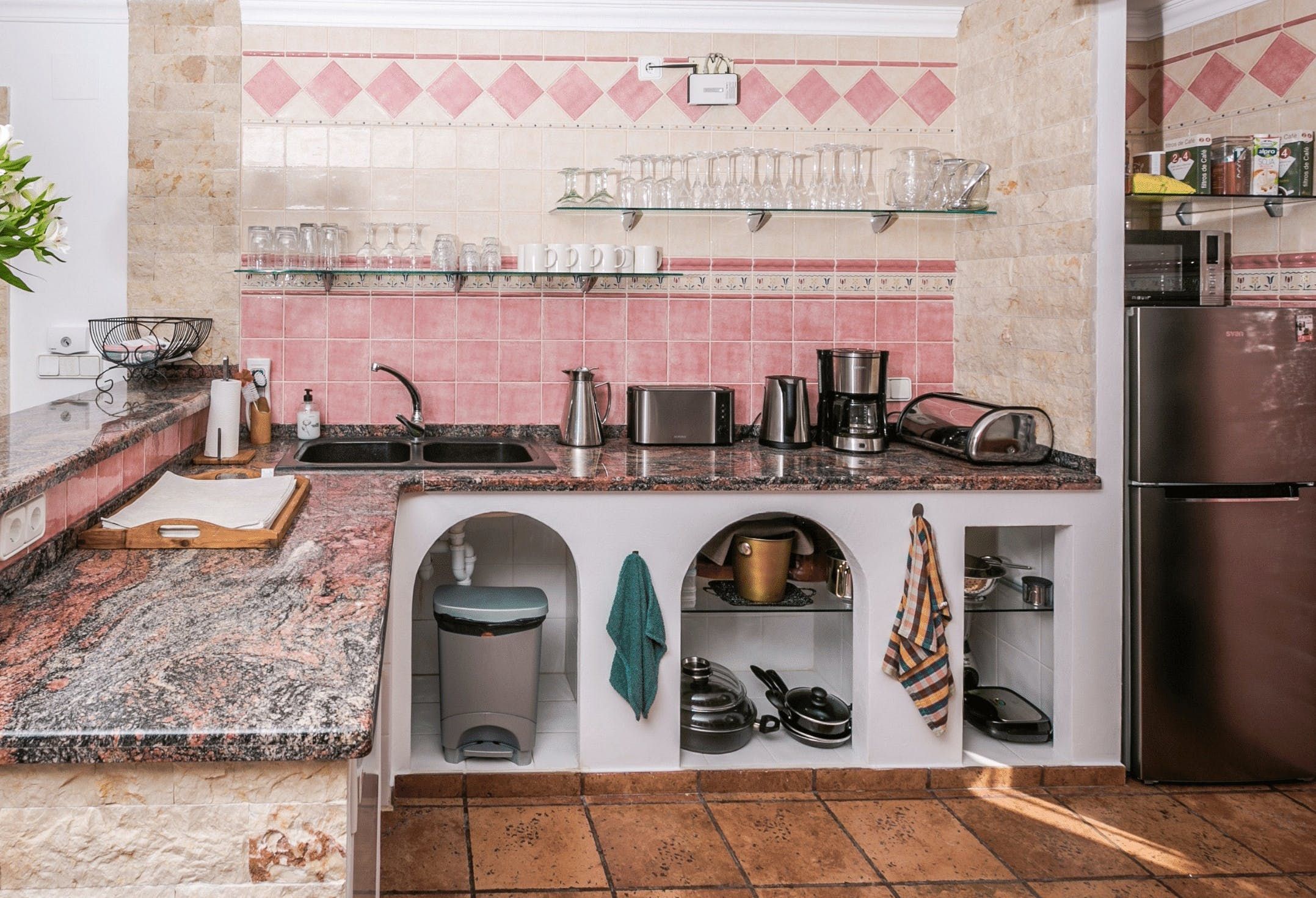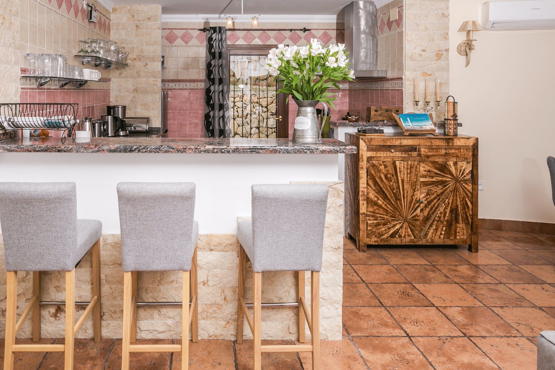 Traditional in every sense, this whitewashed villa has charm and character seeping out of every inch. For starters, the exterior is a sight to behold – a spiral staircase winds around the building's curved edges, creating a mesmerising place to soak up the sunshine. And speaking of, there are plenty of spots to do just that. Sprawl out on the lounge chairs with a good book, enjoy a glass of wine on the balcony or hold court underneath the pergola in the separate chill-out area. We can't forget about the pool, either – jump into the refreshing waters and spend the day splashing underneath blue skies. Come dinnertime, rustle up paella or grilled seafood in the outdoor kitchen, then tuck in as the sun goes down.