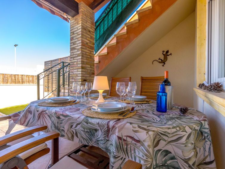 "Residencial Villa Madrid", 2-room semi-detached house 60 m2. Spacious and bright, beautiful and cosy furnishings: living/dining room with digital TV, air conditioning, fan and forced-air heating. Exit to the terrace. 1 room with 1 french bed (1 x 160 cm, length 200 cm), TV, air conditioning and forced-air heating.