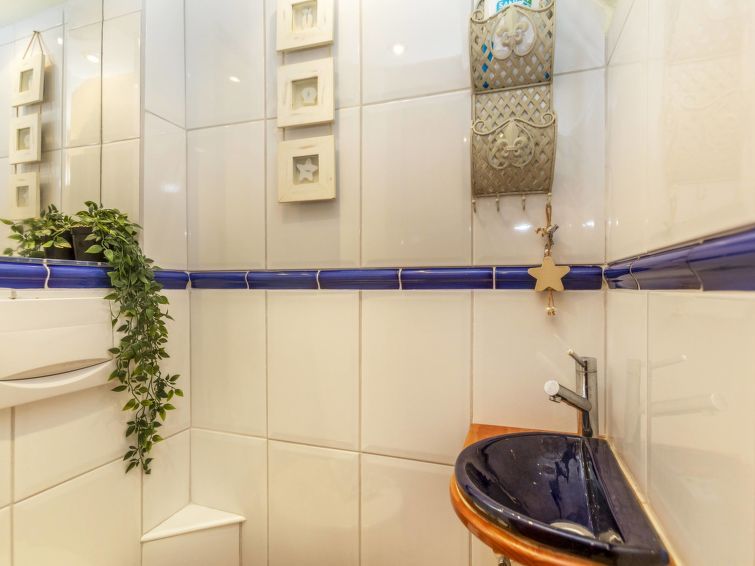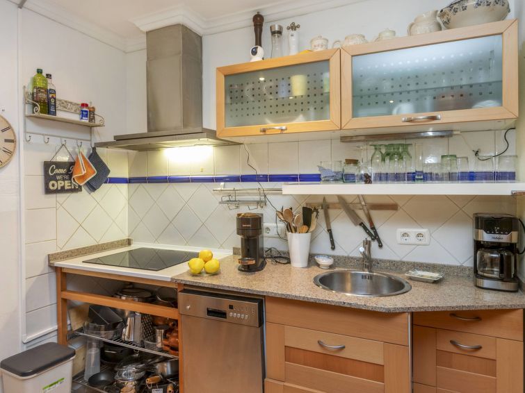 "Corazón de Vinaròs", 2-room house 57 m2 on 3 levels. Renovated in 2005, comfortable furnishings: open kitchen (dishwasher, 3 induction hot plates, toaster, microwave, electric coffee machine) with dining table. Sep. WC. Upper floor: (steep stair) living room with 1 sofabed (135 cm, length 190 cm), digital TV, air conditioning and forced-air heating.