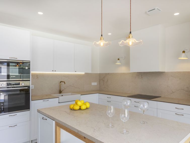 "Les Oliveres", 5-room villa 216 m2 on 2 levels. Object suitable for 6 adults + 2 children. Practical and comfortable furnishings: living/dining room with dining table, digital TV, air conditioning and forced-air heating. Exit to the patio, to the swimming pool. 1 room with 2 beds (90 cm, length 190 cm), air conditioning and forced-air heating.