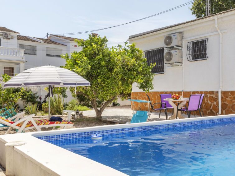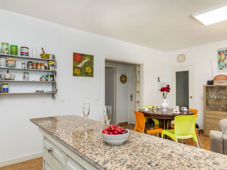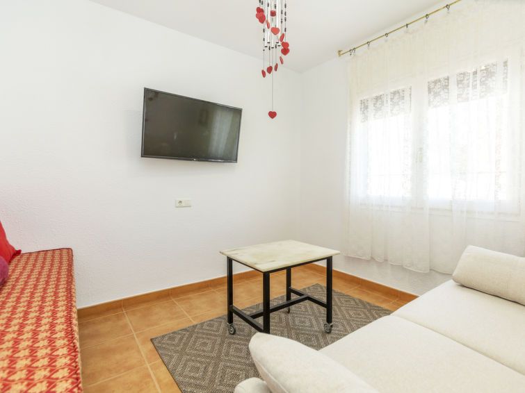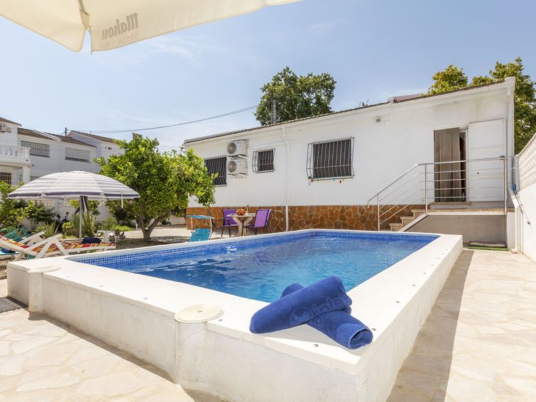 "Matilde", 4-room house 90 m2. Comfortable and cosy furnishings: living/dining room with digital TV and air conditioning. 1 room with 1 double bed (2 x 70 cm, length 190 cm), air conditioning and fan. 1 children's room with 1 wall-trunk bed (70 cm, length 190 cm), TV. 1 room with 1 french bed (1 x 150 cm, length 190 cm), air conditioning and fan.