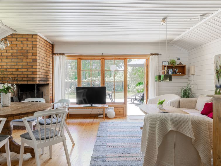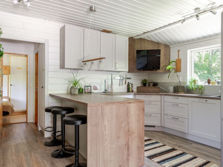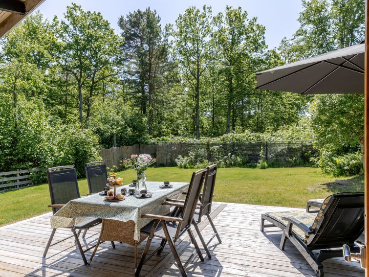 "Väbynäs", 4-room house 65 m2. Living room with TV. Exit to the garden, to the veranda. 1 room with 1 bed. 1 room with 2 beds. 1 room with 1 double bed. 1 double bedroom with 1 double bed. Open kitchen (dishwasher, 4 induction hot plates, toaster, kettle, microwave, freezer, electric coffee machine).