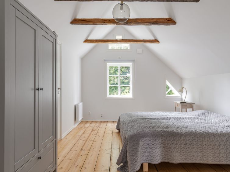 "Skogstorp Ledja", 4-room house 100 m2. Cosy furnishings: living room with Scandinavian wood stove and satellite TV. 1 room with 1 bed and 1 double bed. Kitchen (4 hot plates, oven, dishwasher, toaster, kettle, microwave, freezer, electric coffee machine). Shower/WC. Heating. Upper floor: walk-through room with 1 double bed.
