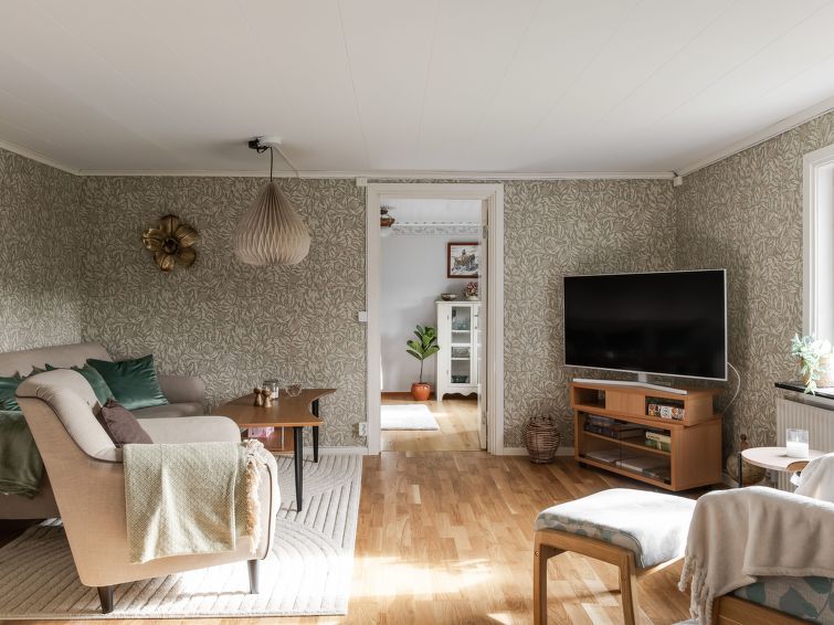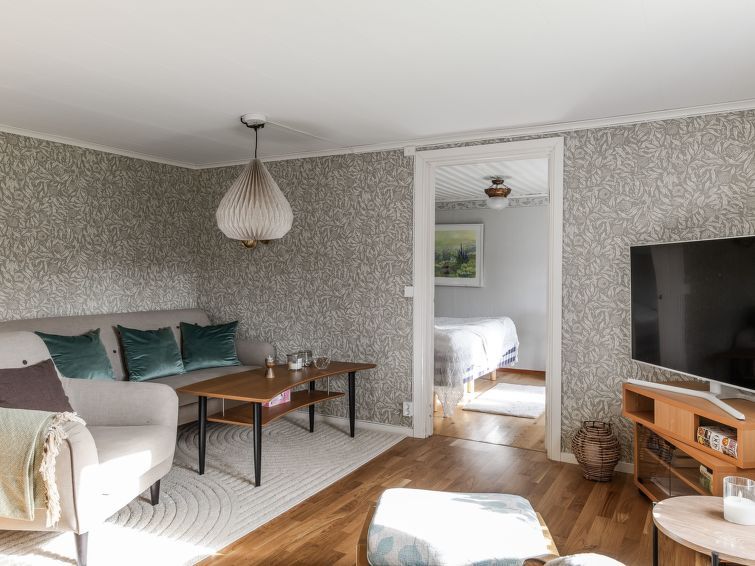 "Skjutsmåla", 3-room house 72 m2. Object suitable for 3 adults + 2 children. Living room with Scandinavian wood stove and TV. 1 room with 1 double bed. 1 room with 1 bed and 1 double bed. Large kitchen (oven, 4 ceramic glass hob hotplates, toaster, kettle, microwave, freezer, electric coffee machine).