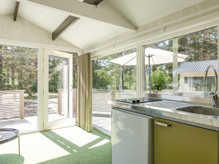 "Hölick Minichalet 1", 2-room house 25 m2. Comfortable and cosy furnishings: living/dining room. Exit to the terrace. 1 double bedroom with 1 double bed (160 cm, length 200 cm). Small, open kitchen (oven, 4 ceramic glass hob hotplates, toaster, kettle, microwave, electric coffee machine).