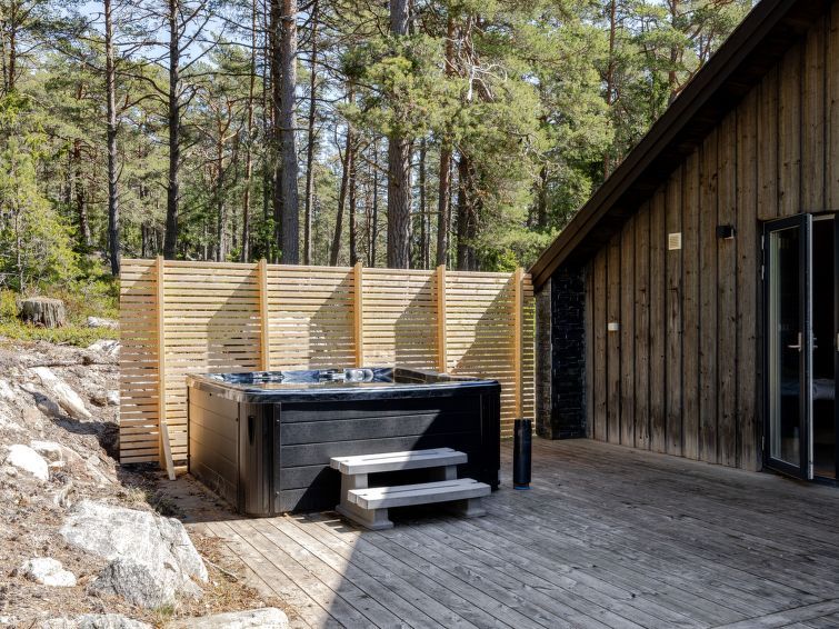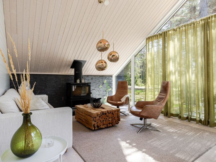"Lagunen Villa 1", 4-room house 90 m2. Spacious and bright, very modern and tasteful furnishings: open living/dining room with Scandinavian wood stove and TV. 2 double bedrooms, each room with 1 double bed (180 cm, length 200 cm). Exit to the terrace. Open kitchen (oven, dishwasher, 4 ceramic glass hob hotplates, toaster, kettle, microwave, freezer).