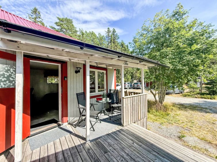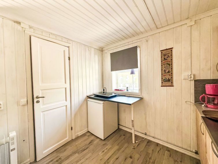"Lugnet", 1-room house 40 m2. Practical and comfortable furnishings: open living/dining room with 1 double sofabed (160 cm, length 200 cm), 1 double bed (2 x 90 cm, length 200 cm). Kitchen-/living room (2 hot plates, toaster, kettle, microwave, electric coffee machine). Shower, simple dry toilet.