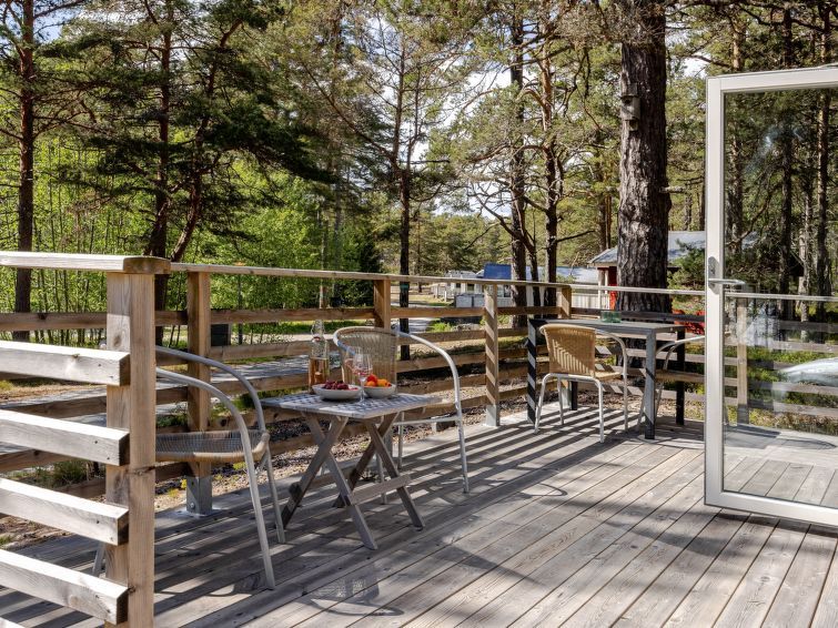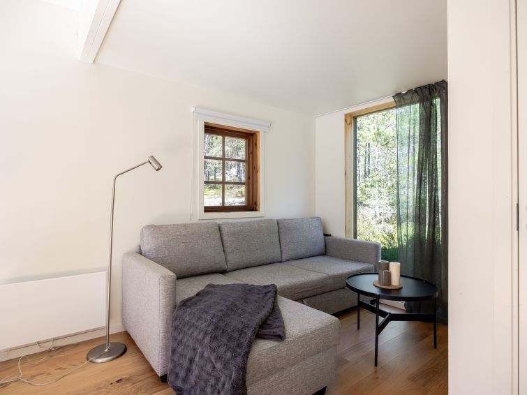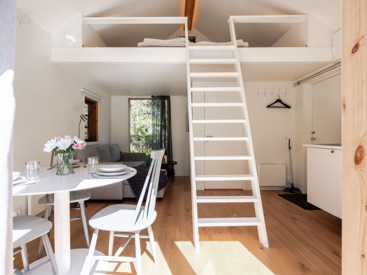 "Myckla", 2-room house 28 m2. Object suitable for 2 adults + 2 children. Comfortable and cosy furnishings: living/dining room with 1 sofabed (160 cm, length 200 cm), 1 double bed (160 cm, length 200 cm), TV. Exit to the terrace. Small, open kitchen (oven, 4 ceramic glass hob hotplates, toaster, kettle, microwave, electric coffee machine).