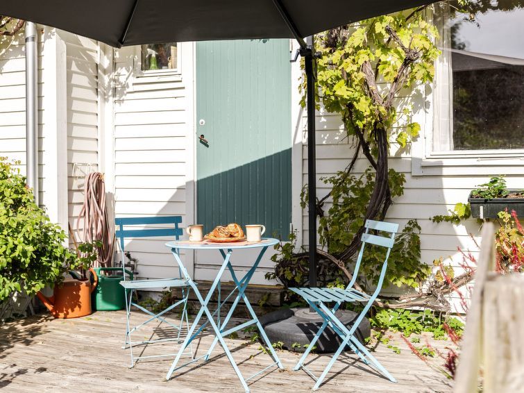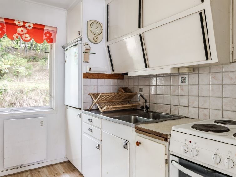 "Frösakull", 5-room house 80 m2. Open living/dining room with dining table and TV. Exit to the garden, to the veranda. Small dining room. 1 room with 2 beds (90 cm). 1 room with 2 beds (90 cm). 1 room with 2 beds (90 cm). Kitchen (oven, dishwasher, 4 induction hot plates, toaster, kettle, microwave, freezer, electric coffee machine) with dining table.