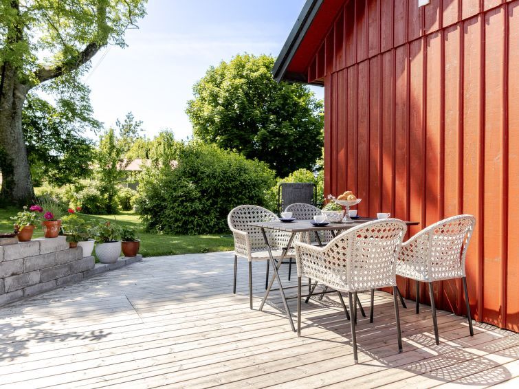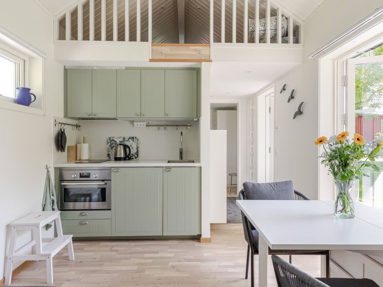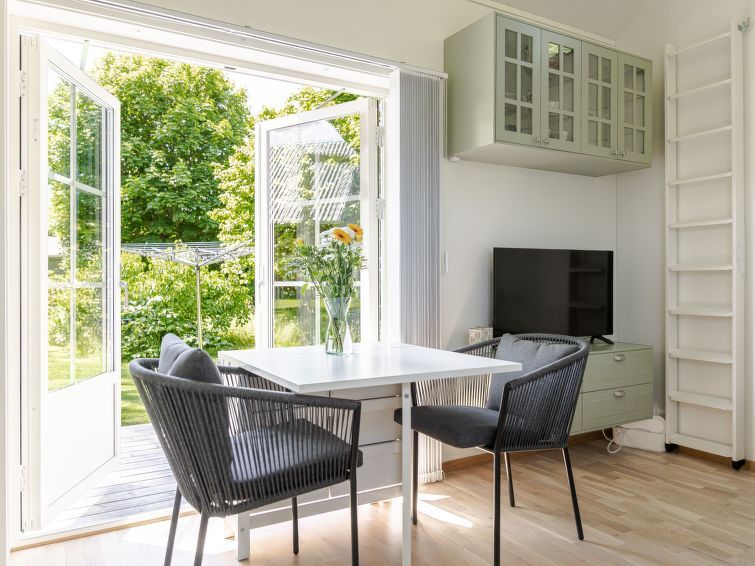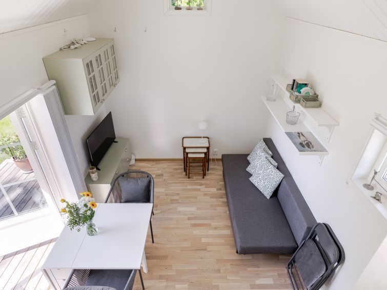 "Särdals Lycke", 2-room house 30 m2. Beautiful furnishings: living/sleeping room with 1 sofabed and TV. Exit to the garden, to the terrace. 1 room with 1 bed. Kitchen-/living room (oven, 2 induction hot plates, toaster, kettle, microwave) with dining table. Shower/WC. Heating. Upper floor: (steep stair) open gallery with sloping ceilings with 2 beds.