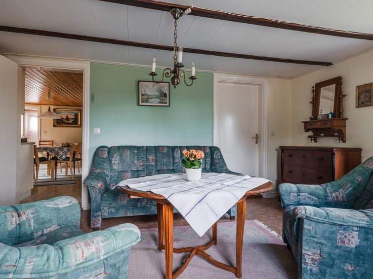 "Ånhultaberg/Nylund", 4-room house 90 m2 on 2 levels. Living/dining room with dining table and TV. 1 room with 1 double bed (160 cm, length 200 cm). Kitchen (oven, 4 ceramic glass hob hotplates, toaster, kettle, microwave, freezer, electric coffee machine). Shower/WC. Electric heating.