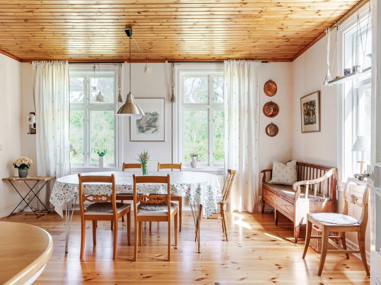 "Vetlycke", 7-room house 170 m2. Living room with TV. 1 room with 1 double bed. 1 room with 1 double bed and Scandinavian wood stove (only for decoration). Open kitchen (4 hot plates, dishwasher, toaster, kettle, microwave, freezer, electric coffee machine) with dining table. Shower/WC.