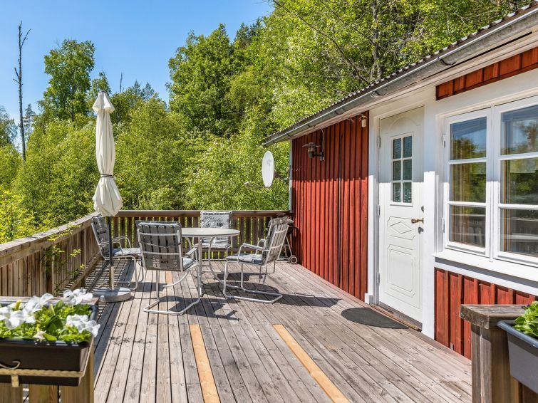"Stenfors", 2-room house 38 m2. Cosy furnishings: living/sleeping room with 1 double sofabed, dining table, satellite TV and hi-fi system. Exit to the terrace. 1 room with 2 beds. Open kitchen (4 hot plates, oven, toaster, kettle, microwave, freezer, electric coffee machine). Shower/WC.