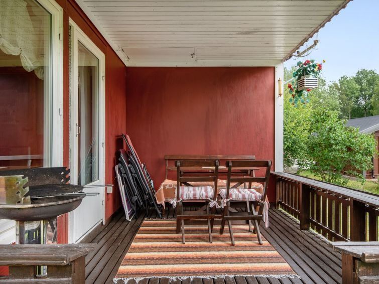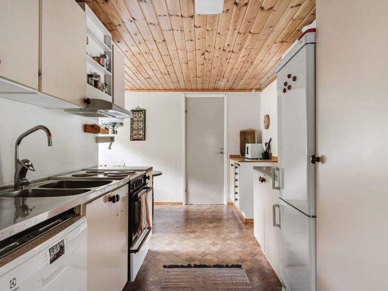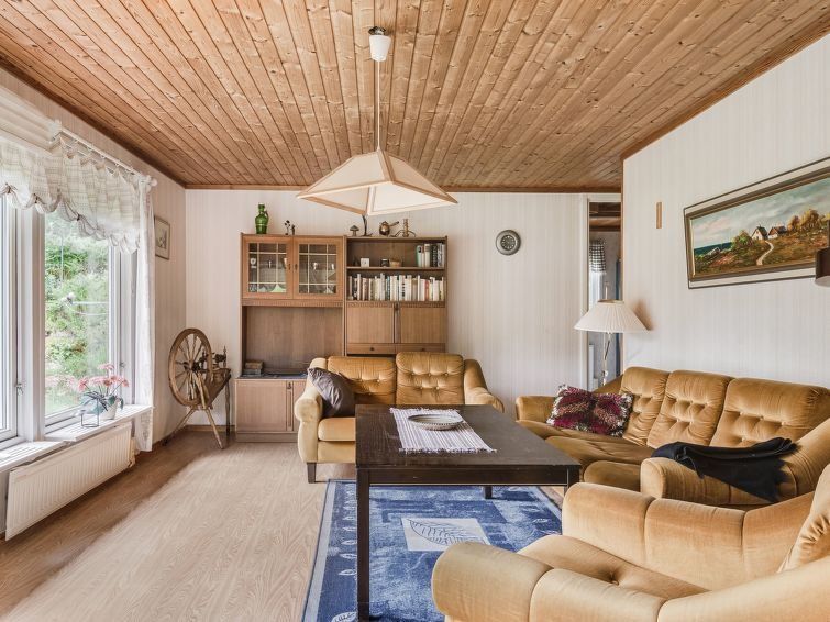"Västanvik Snickarhagen", 4-room house 60 m2. Cosy furnishings: living room with satellite TV. Exit to the veranda. 1 room with 1 double bed. 1 room with 1 x 2 bunk beds. 1 room with 1 bed. Open kitchen (4 hot plates, oven, dishwasher, microwave, freezer, electric coffee machine) with dining table.