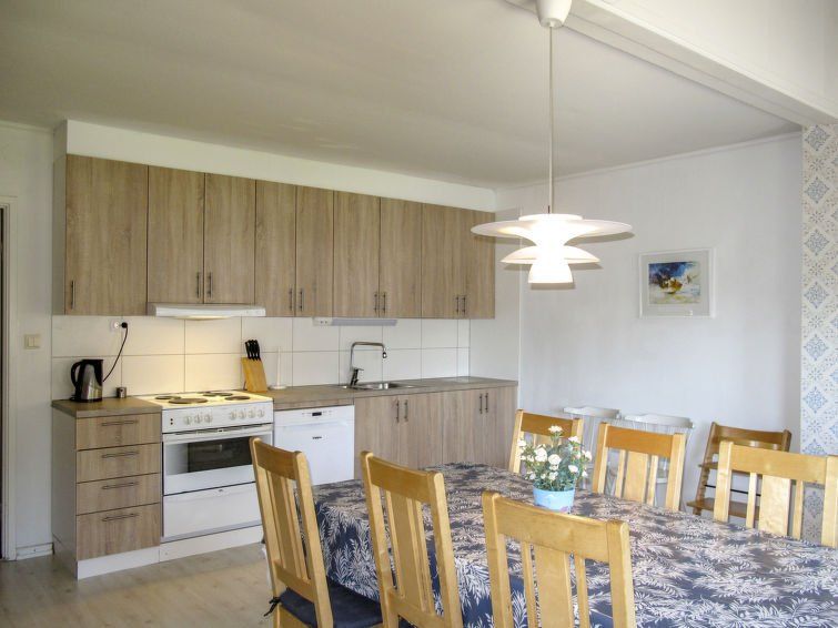 "Trollsjö Stegeborg", 4-room semi-detached house 130 m2, on the ground floor. Bright, cosy furnishings: living/sleeping room with 1 x 2 bunk beds, open-hearth fireplace and satellite TV. 1 room with 1 double bed. 1 room with 1 double bed. 1 room with 1 double bed. Kitchen (4 hot plates, oven, dishwasher, kettle, microwave, freezer, electric coffee machine) with dining table.