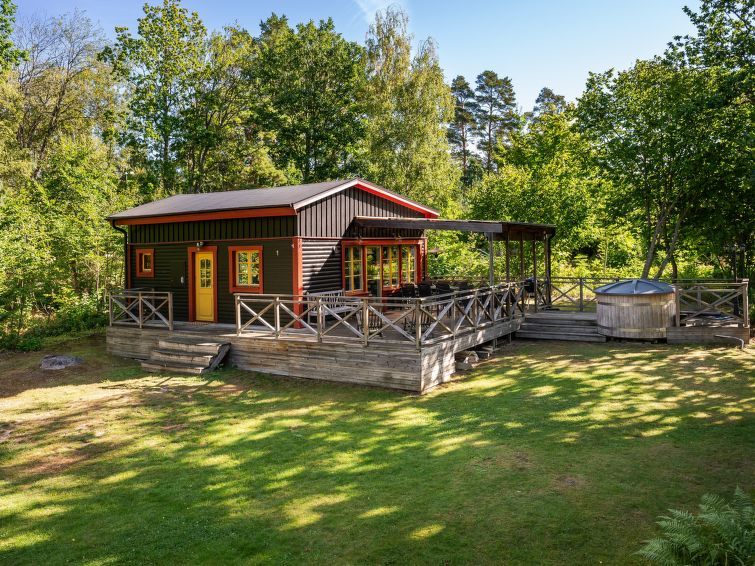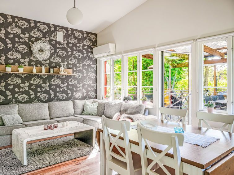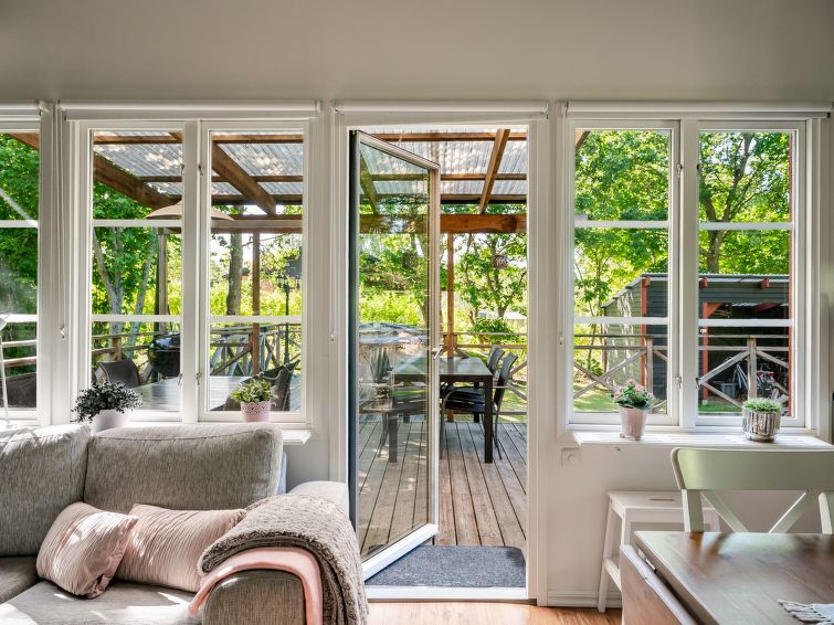 "Stenlycke", 3-room house 45 m2. 1 room with 1 double bed. Sleeping alcove with 2 beds. Living room with dining table and TV. Exit to the terrace. 1 room with 2 beds. Sleeping alcove with 2 beds. Open kitchen (oven, 4 induction hot plates, toaster, kettle, microwave, freezer, electric coffee machine).