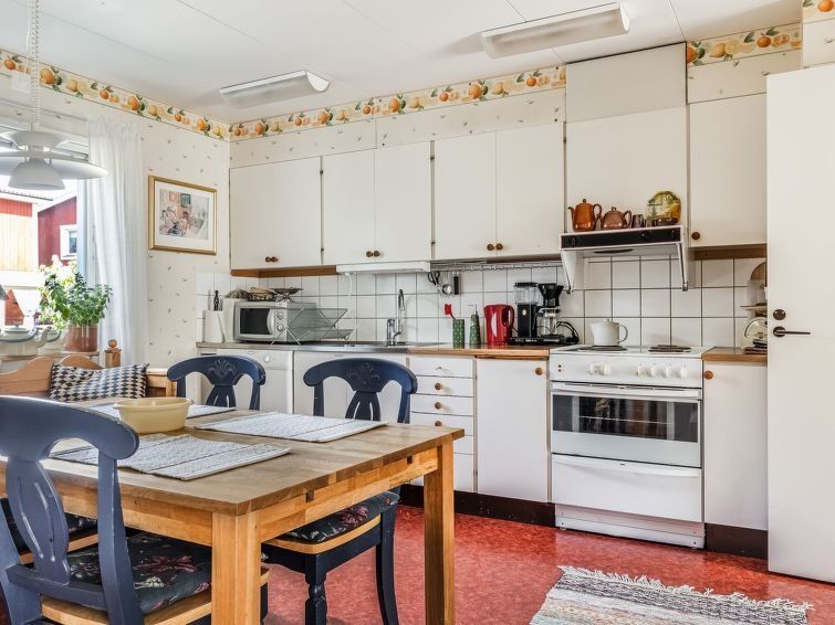 "Mölltorp", 4-room house 150 m2 on 2 levels. Bright: living room with Scandinavian wood stove and satellite TV. Exit to the terrace. 1 room with 1 double bed. Kitchen (oven, dishwasher, 4 ceramic glass hob hotplates, toaster, kettle, microwave, freezer, electric coffee machine) with dining table.