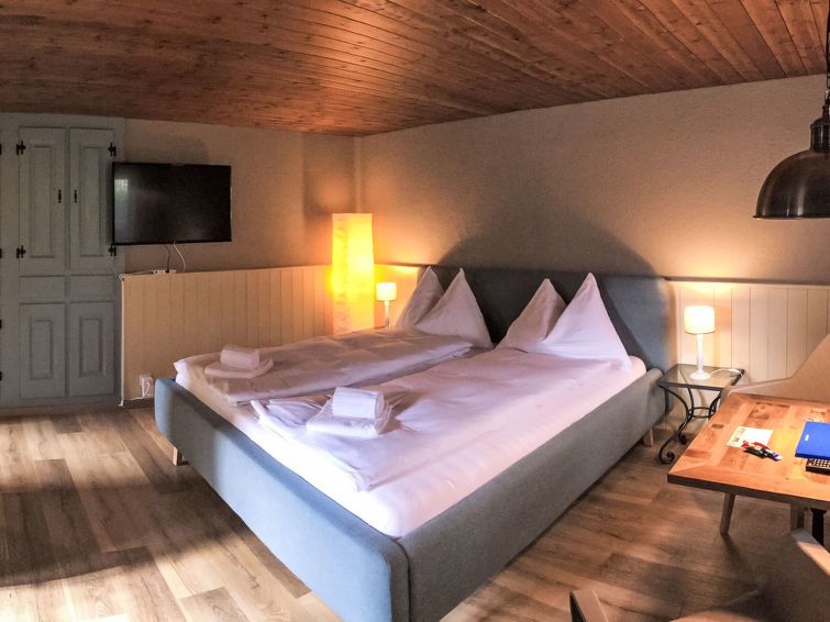 Information about the holiday home was good, as were the directions. Service on site good and fast. The bed is too low for older people, the mattress quite hard and irregular. The dining table is small, even for 2 people. Two hotplates is too little to prepare a full meal. A frying pan is missing. The bathroom is full but the shower room is actually too small.
