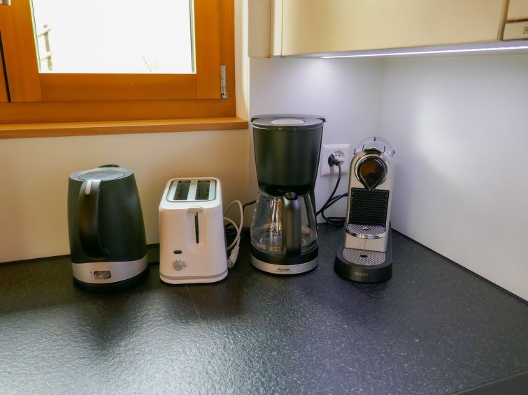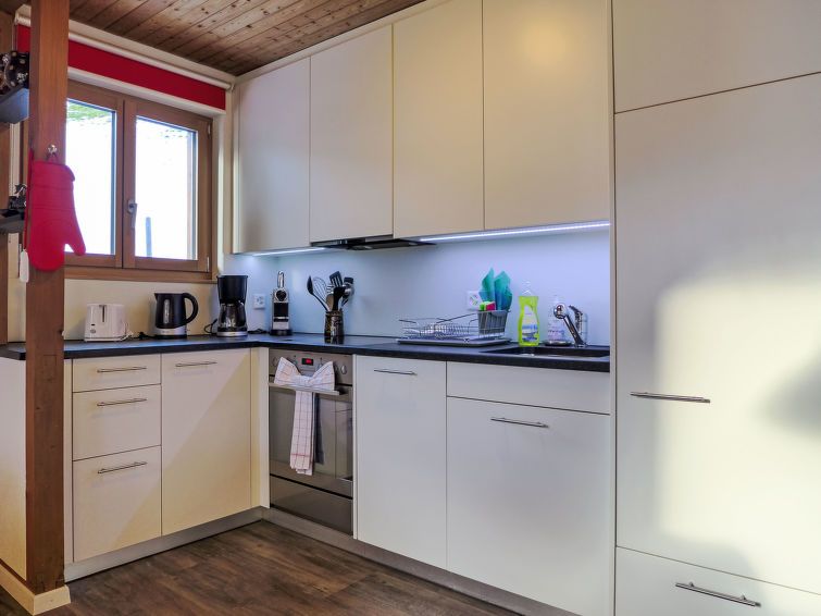 I got the key from Interhome and the staff was very kind. I stayed for 5 days and had a great time. Instead, it would be better to have a rental car to get around. They said there was a free shuttle bus, but it was hard to get the time, and since it was the top floor, I had to move my carrier up the stairs. It was a bit difficult to move my carrier. When I first entered, it was spacious and open. There were two separate rooms, and they gave me welcome chocolates and towels, one big and one small. The kitchen had a large table, microwave, refrigerator, cooking utensils, kitchen towels, and an oven, which was nice. It also had YouTube, so I could watch Korean videos. It was cold on the first day I stayed, and I slept wearing a padded jacket because there was no heating. When I asked Interhome, they said that the temperature rose to 30 degrees during the day and that they don't have heating these days. Except for the first day, it wasn't cold after that. It was quiet around here so it wasn't noisy, and since it felt like a private house, I could use it privately. There was a house in front of the house, so the view was blocked, but I could see half of the top of the Eiger North Face, and the view was nice. The bathroom and bed were well-maintained and clean.