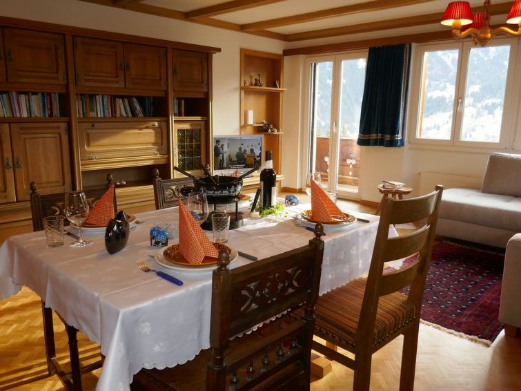 The chalet is beautifully situated, offers stunning views over the valley, and has spacious bedrooms and two bathrooms. The interior and kitchen are in need of renovation, as are the kitchenware (including pans, pots, etc.). The furniture in the living room is very outdated (cabinets, table, etc.). The beds are comfortable, and the bathroom has been renovated.