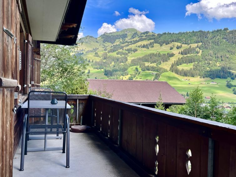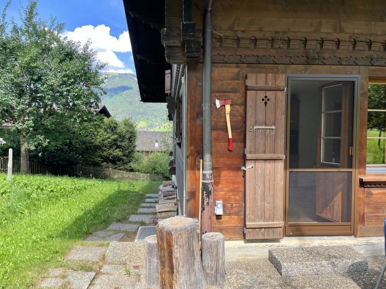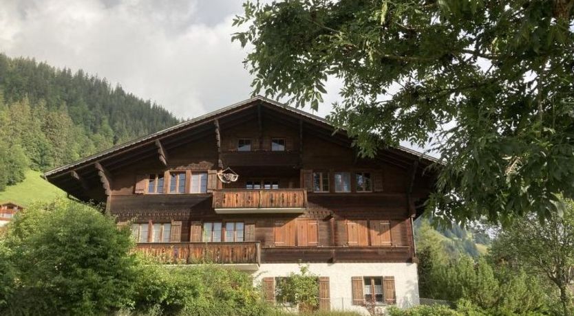117 m2. More information by the provider: 4-room apartment (117sqm) on the ground floor of a chalet built in 1984. Peaceful location with a great view. 5 minutes walking distance from the village centre. Opened parking, large terrace with garden, balcony. Store room for skis as well as a laundry with washing machine for common use in the basement.