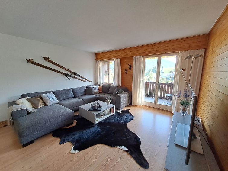 85 m2. More information by the provider: 4.5-room flat (85sqm) on the raised ground floor of a multi-family house built in 1988, laying slightly higher on the mountain slope, which promises a wonderful prospect. The balcony offers a beautiful view of the village of Zweisimmen and the Rinderberg.