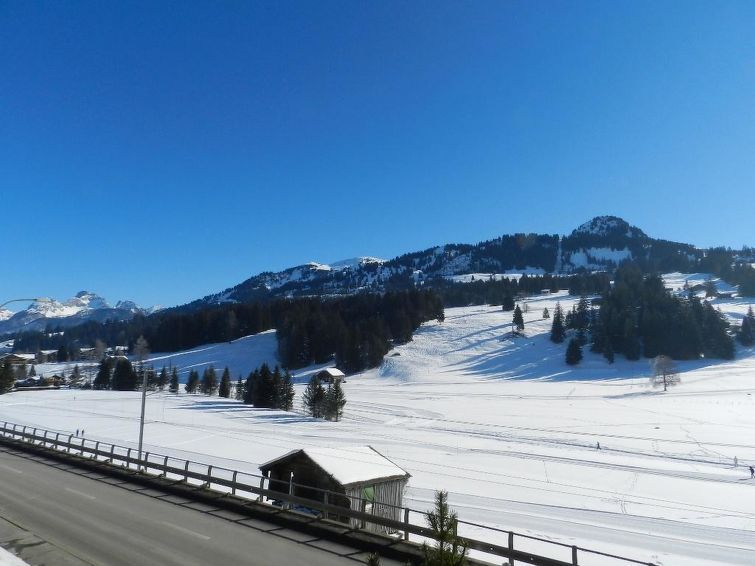 100 m2. More information by the provider: Spacious 3.5 room attic apartment (100sqm) with two balconies on the 2nd floor in a multi-family chalet built in 1963. Nearby the ski and cross-country ski slopes of Saanenmöser. Centrally located, on the main road (noise emmission). Access to the apartment by stairs only.