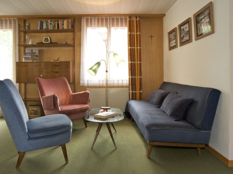68 m2. More information by the provider: Carefully decorated 3-room apartment, central location, only a few walking minutes from train/bus station and village center. Picturesque view and big balcony. The chalet is situated at a stream. Ideally placed to start your skiing pleasure or for a hike in the mountains.