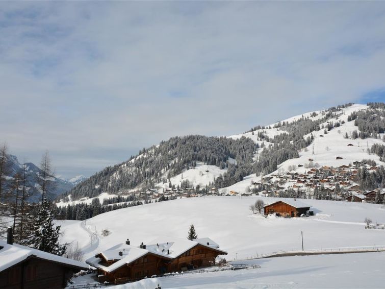 150 m2. More information by the provider: Bright 2 bedroom attic apartment (150sqm) on the 1st floor, built in 2001. Located in a calm and sunny area with breathtaking view over the Saanenland. 5 minutes walk to the centre of the village, the train station of Schönried and the ski area Horneggli.