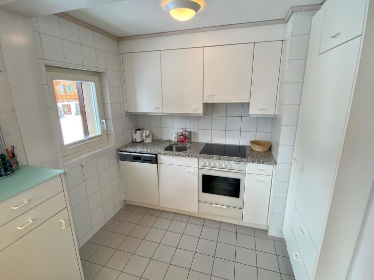 60 m2. More information by the provider: Sunny 3-room apartment (60sqm) on the 1st floor of an apartment house. Quiet location, close to the chairlift Horneggli and the village centre. Large furnished balcony to the south. 1 parking space (no. 14) in the parking garage of the chalet Arlette (max.