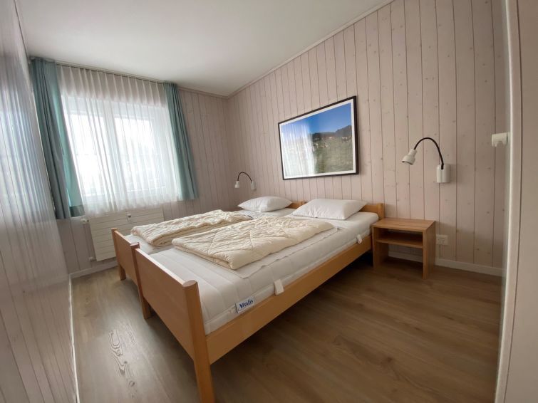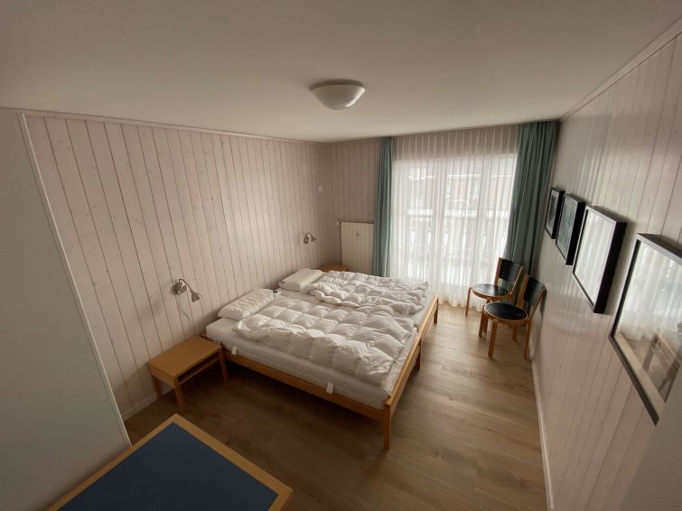 SW corner apartment with small view between the chalets and set back from the busy road. Household equipment and cleanliness in order. Wardrobe in each room with desk-table in adult bedroom. Comfortable living room with dining table and open kitchen. Wi-Fi with written code. PIN Samsung TV code not found for rent, but after remembering our Samsung, it is the factory one 0000 In Saanen super swimming pool and Alpenruhe for children's games. PM in Switzerland