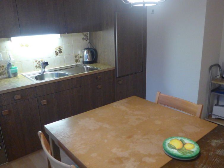 2-room apartment 60 m2 on 1st floor, south-west facing position. Practical and cosy furnishings: living/sleeping room 30 m2 with 1 double bed (2 x 90 cm, length 200 cm), satellite TV (flat screen), radio. Exit to the balcony. 1 room with 1 double bed (2 x 90 cm, length 200 cm). Kitchen-/living room (3 hot plates, oven, electric coffee machine).