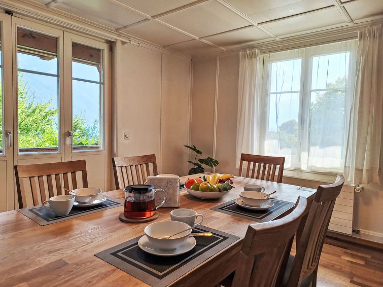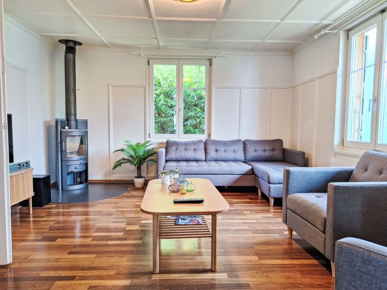 "Haus am See 4B", 5-room chalet on 3 levels. Spacious and bright, very comfortable and cosy furnishings: living room with Scandinavian wood stove and cable TV. Exit to the balcony. Dining room. Exit to the balcony. Kitchen (oven, dishwasher, 4 ceramic glass hob hotplates, toaster, kettle, microwave, electric coffee machine).