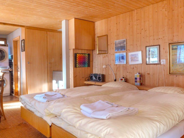 "Jungfrau a d Ledi", 3-room chalet 75 m2. Spacious, partly renovated, modern and tasteful furnishings: living/dining room 30 m2 with 1 bed (90 cm, length 190 cm), dining table, cable TV and international TV channels (flat screen), radio and CD-player. Exit to the balcony, south facing position.