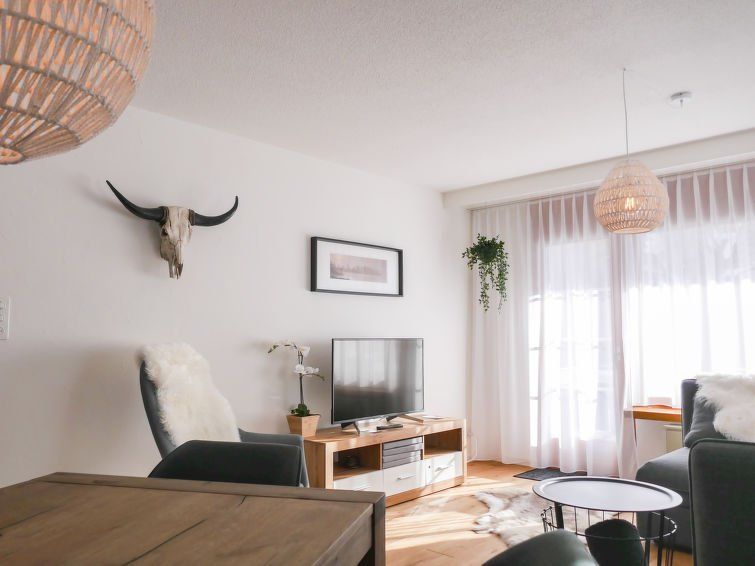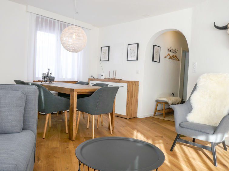 Positive: Cozy, new, very neat furnishings, top-equipped kitchen, quiet, sunny location, Jakobshorn ski lift within walking distance, otherwise very good public transport connections to Parsenn and Rinerhorn, shopping facilities within walking distance, close to the center (approx. 10 minutes on foot) Negative: Cold feet, ski depot/locker too small for 4 people