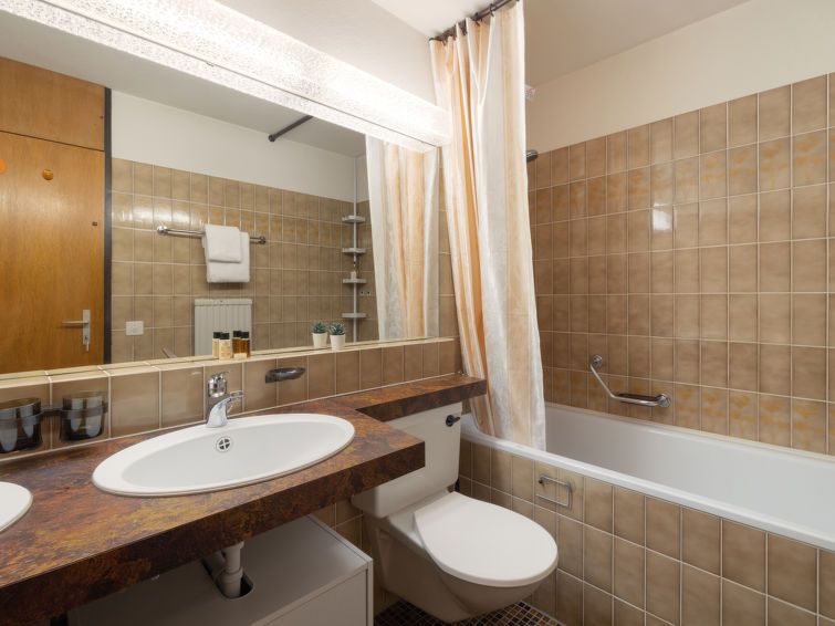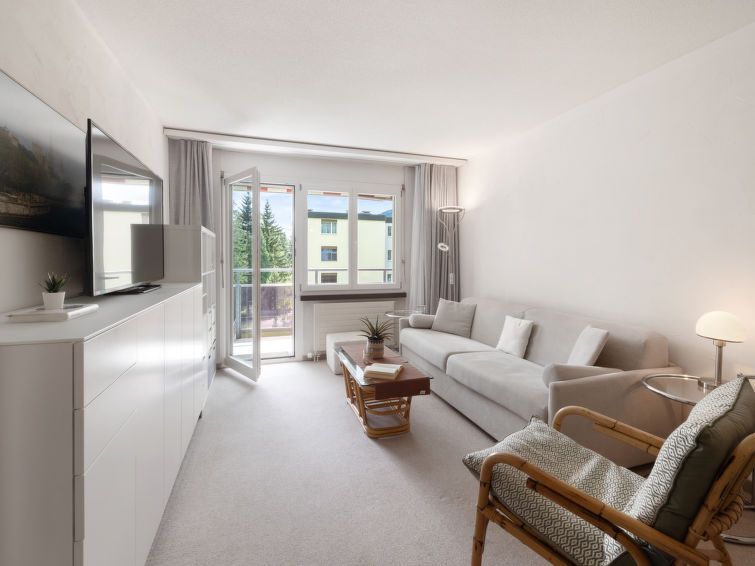 The equipment of the apartment is partly getting old, but quite complete and well maintained. In the kitchen we didn't miss anything (apart from a spatula). The sofa bed is of course not a four-poster bed with a lying surface of approx. 1.20 m for 2 adults, but you simply have to assume that if you book an apartment with only one bedroom. The location is very quiet and central. In short: we would love to come back because the price is really okay for Davos.