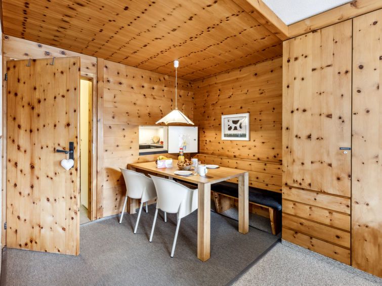Spacious studio, very clean, fully equipped and practical. Location close to the Parsenn lifts. Swimming pool and sauna available in the residence. Recent quality bedding. Furnished in a cozy and functional way. Enchanted