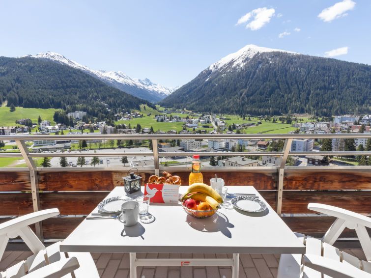 Great functional and clean apartments with a unique view of Davos and the mountains! Pleasant extras such as indoor pool and sauna. Friendly and helpful staff. Shopping (Spar, Coop, Migros), Parsennbahn and bus stop within a few minutes walking distance. And with a practical ski depot at Paarsenn, you even save yourself having to lug your skis around every day ;-) Deduction for the lack of directions/arrival information and for paying only cash for the parking lot (in 2022!).