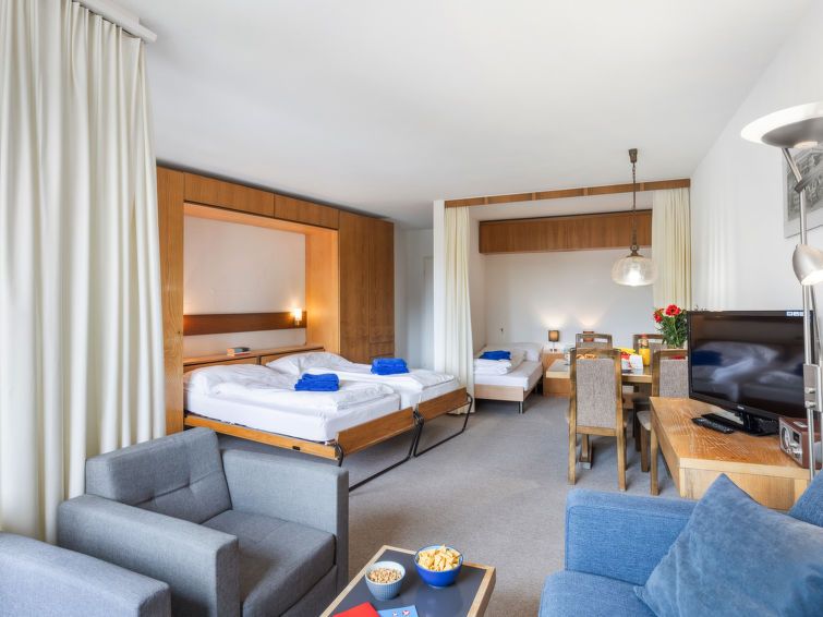 We've filled up. The reception was very nice and everything worked reliably. At 52 square meters, the apartment is just big enough for a family of four. The "charm of the 1960s" is something special. The price-performance ratio was okay for Davos, since the location is good. It is rugged, you have a beautiful view and the shops and the ski bus can be reached in 10 minutes on foot.