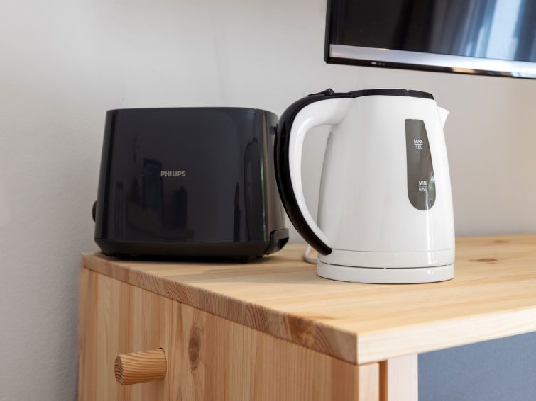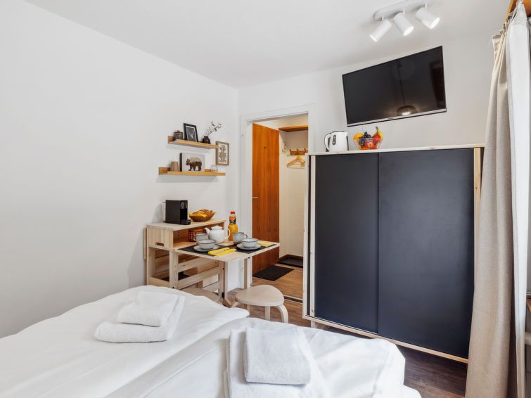 1-room apartment 16 m2, on the ground floor. Renovated in 2024, comfortable and cosy furnishings: living/sleeping room with 1 french bed (140 cm, length 200 cm), satellite TV (flat screen). (toaster, kettle, electric coffee machine) with dining table. Shower/WC. Facilities: Internet (WiFi, free).
