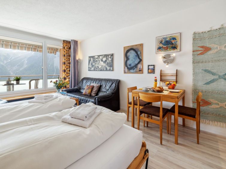 Well located apartment. The facilities are good, especially the small kitchen, where you can find everything you need. Fairly new shower room. Comfortable fold-away beds. Close to the ski slope, almost ski in/ski out possible. Nice balcony with a great view of the mountains. Absolutely recommended for 1 person, but it might be quite cramped for two people. However, the price is really fair for Arosa, so you can weigh things up here