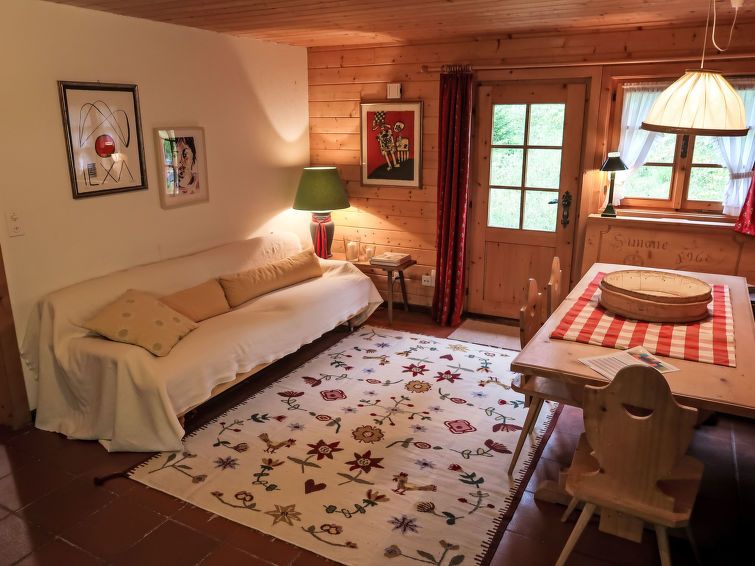4-room apartment 80 m2, on the ground floor. Rustic and cosy furnishings: living/dining room. Exit to the patio. 3 double bedrooms. Open kitchen (4 hot plates, oven, dishwasher, toaster, kettle, raclette grill, fondue Set (cheese)). Shower, sep. WC. Electric heating, boiler (300 litres).