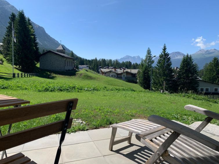 23 m2. More information by the provider: The small studio is situated in an elevated, sunny location in the heart of Lenzerheide, right in the village center. It is located directly on the village slope and offers a parking space. The ski slope as well as hiking and biking trails begin right outside the door.