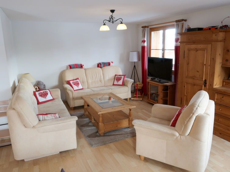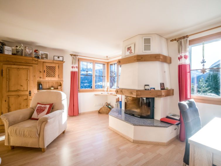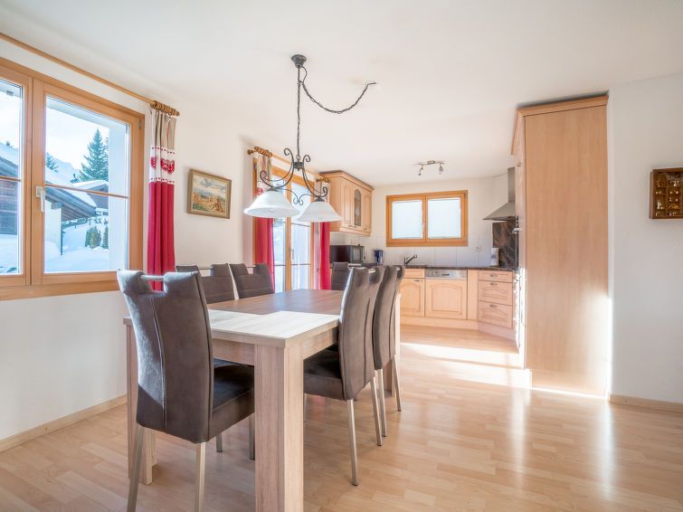 "Tga Stgirat Obergeschoss", 3-room apartment 82 m2 on 1st floor. Comfortable and tasteful furnishings: living/dining room with open-hearth fireplace and TV (flat screen), DVD. Exit to the terrace. 1 double bedroom. Exit to the terrace. 1 double bedroom. Open kitchen (oven, dishwasher, 4 ceramic glass hob hotplates, toaster, kettle, electric coffee machine, raclette grill, fondue Set (cheese)).