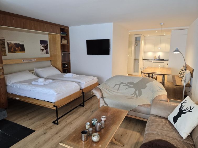 37 m2. More information by the provider: Cozy and newly renovated 1.5-room apartment in the heart of Parpan. The holiday apartment features a bunk bed in a niche near the entrance area and a fold-away bed in the living area that accommodates two people. Welcome to the Ronida holiday apartment, located just steps away from the Heimberg chairlift! This prime location offers direct access to the eastern side of the Lenzerheide ski resort, providing you with convenient ski-in/ski-out opportunities.
