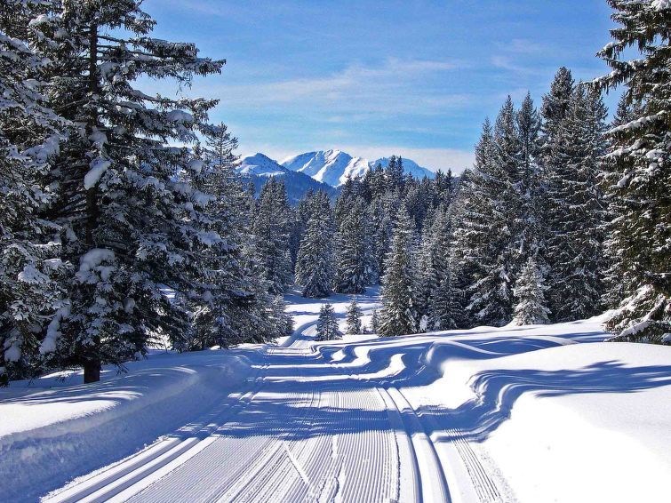 112 m2. More information by the provider: The main floor has one bedroom (1 bunk bed and 2 twin beds), bathroom with toilet/sink, shower, sauna (with a panoramic view of the mountains), laundry room (washing-machine and dryer). The upper level has 2 bedrooms (1st room has 1 bunk bed; 2nd room has a queen bed plus TV); living/dining room, TV, radio, phone, internet; kitchen (well equipped with steamer oven, oven, dishwasher, refrigerator and freezer, raclette oven, fondue burner, mixer, toaster, microwave, capsule coffee maker (Dolce Gusto brand); bathroom with toilet/sink, shower and bathtub.