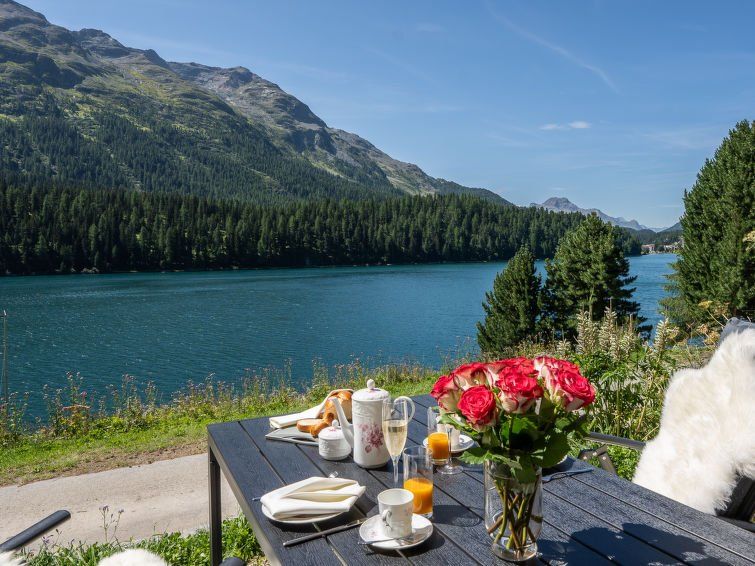 The apartment is located in a very quiet spot and is beautifully furnished—everything you need is there. We really appreciated that soap, two coffee capsules, and a nut tart were provided for us. The view of the lake from both rooms is wonderful. There's no direct access to the lake, though—but that's not a problem.