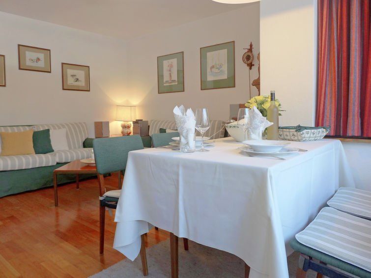 The apartment is a bit old and the bathroom is quite small for 4 people, but the location for skiing is very good. You can almost drive up to the apartment. The bus stops are also easy to reach. All the necessary cooking utensils for simple meals were available, but you have to bring your own spices, salt, etc. The only thing that was awful was the St. Moritz winter service for pedestrians, but that's the fault of the municipality and not the apartment...
